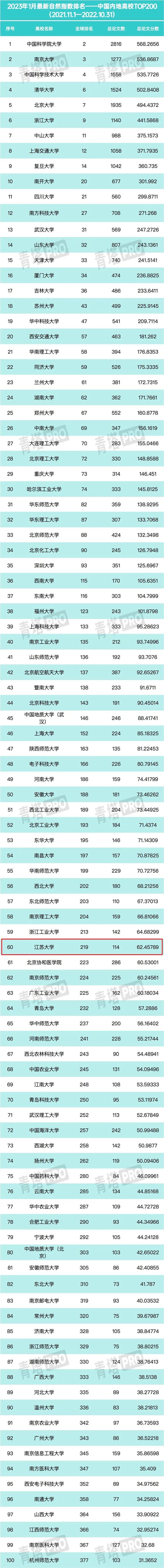 近日,自然指数网站(Nature Index)更新了最新的自然指数数据(统计时段为2021.11.1至2022.10.31)。数据显示,我校以总论文数114、总论文分数62.45,排名全球219位、内地高校60位。