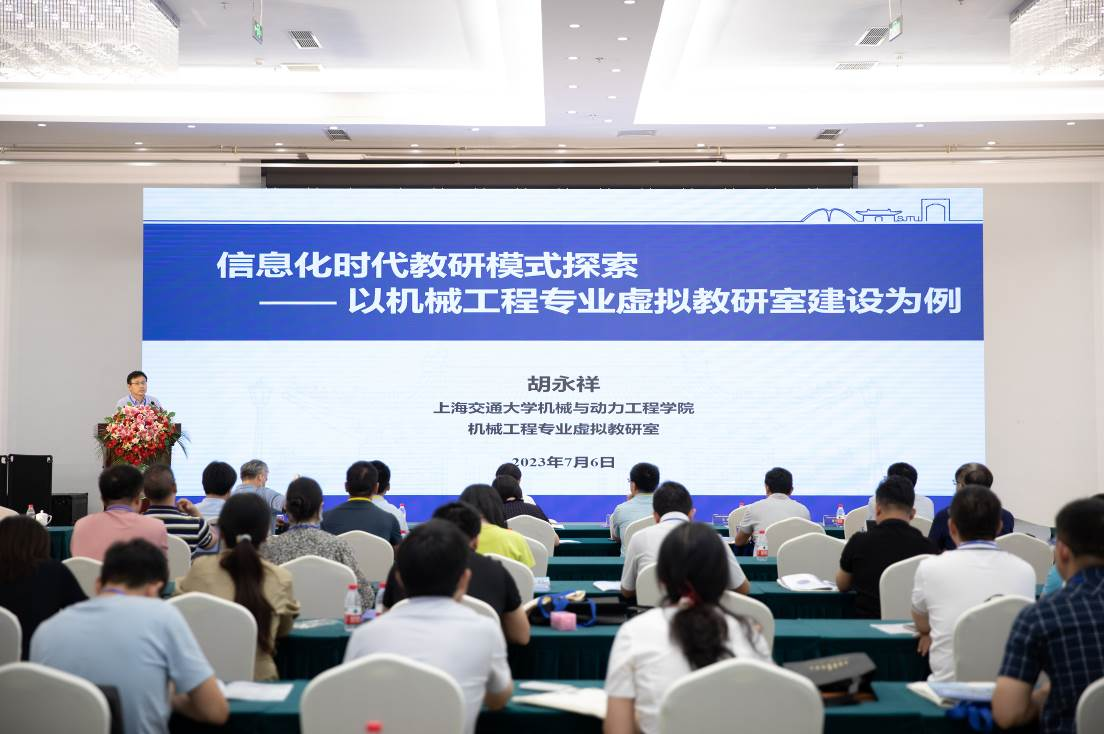 大会报告阶段,上海交通大学机械与动力工程学院党委副书记胡永祥以《信息化时代教研模式探索——以机械工程专业虚拟教研室建设为例》为题作交流报告。西安交通大学先进制造技术研究所所长、机械制造技术基础国家虚拟教研室副主任张俊以《虚实融合 多效联动 机械制造类课程教学迈入新台阶》为题作交流报告。