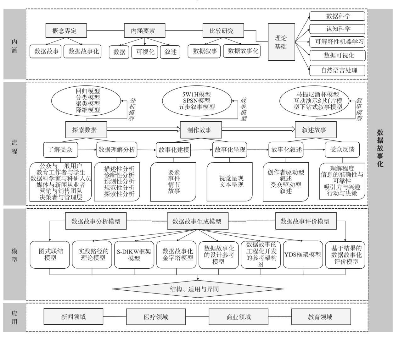 数据故事化是把枯燥的数据用有趣的形式进行揭示。刘桂锋教授团队在《图书情报工作》发表论文,采用内容分析法对数据故事化的代表性文献内容,从概念内涵、基本流程、相关模型以及应用实践四个方面进展进行梳理和分析。研究表明,数据故事化研究目前仍处于探索阶段,在内涵、流程、模型、方法、工具等理论研究以及实践应用领域存在较大提升空间,未来研究注重构建我国数据故事化研究的自主知识体系和应用实践体系。