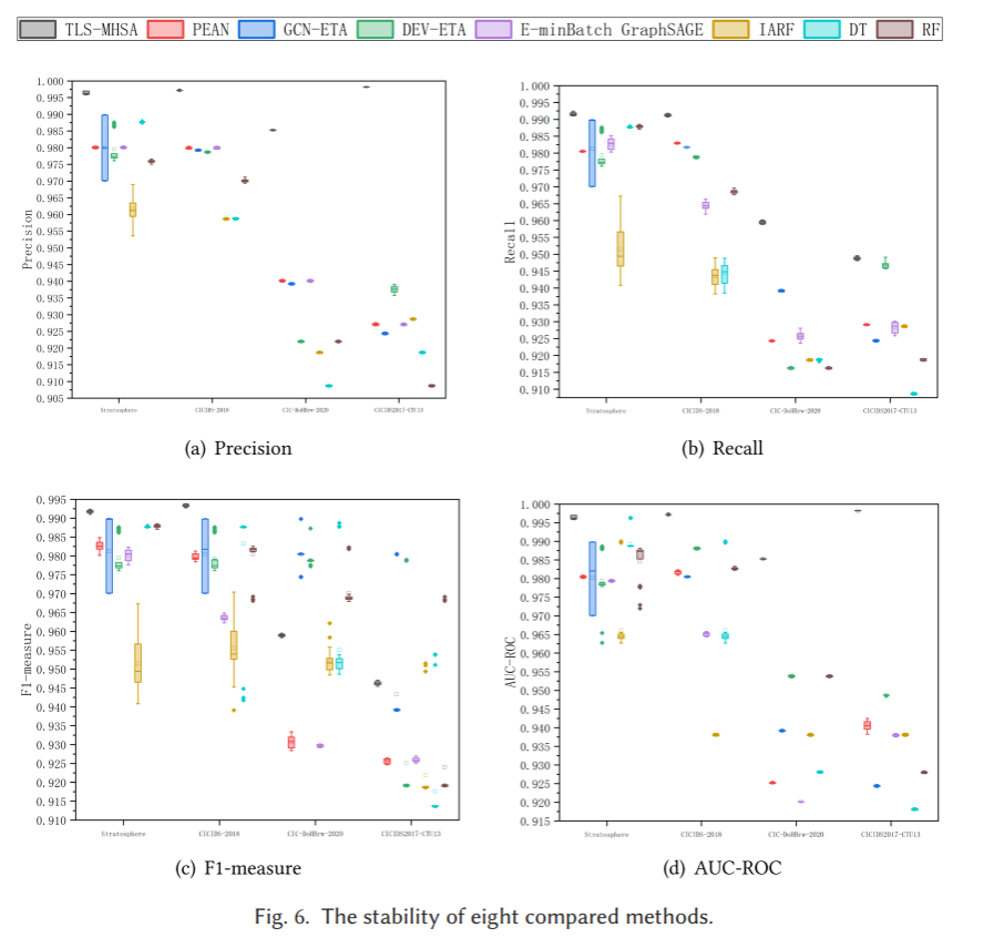 陈锦富教授团队提出了一种高效的基于多头自注意力机制的加密恶意流量检测方法,用于检测加密流量中存在的恶意攻击行为。该研究提取TLS流量的特征并进行流量统计以过滤冗余特征,利用多头自注意机制来集中学习关键特征并生成最重要的组合特征,以此构造基于多头自注意机制的加密恶意流量检测模型TLS-MHSA,从而检测加密流量中的恶意攻击。实验结果验证了所提出的TLS-MHSA模型能取得更高的精确度、召回率、F1-measure、AUC-ROC以及稳定性。相关研究成果发表于ACM Transactions on Privacy and Security。